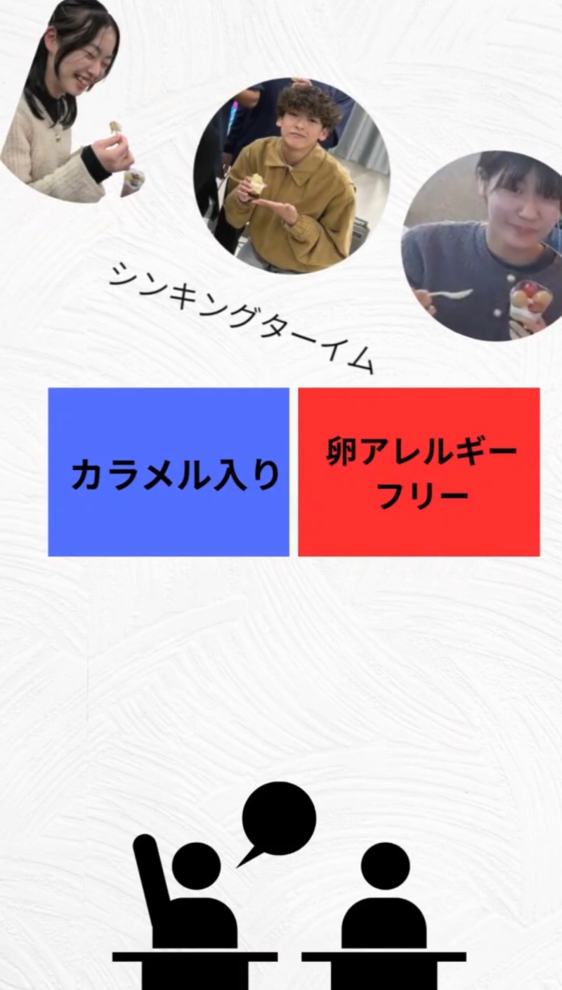 このアイデアは、合宿2日目のインタビューで伺った、「卵アレルギーなど、子どものアレルギーに対応できるお菓子が街のお菓子屋さんで買えたら嬉しい」という地域の方の声がもとになっています。