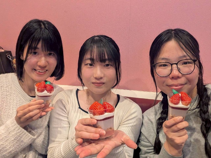 【地域×商品開発コース】のメンバーは、全員お菓子が大好きです! メンバー同士仲が良く、ミーティング後にそのまま残って、おしゃべりタイムになることも。大変なこともたくさんありましたが、個性豊かなメンバー同士で助け合って支え合って、楽しく活動できました!