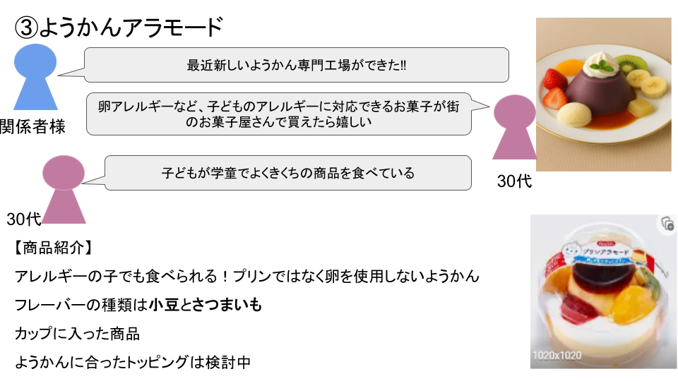 そしてこちらは、「ようかんアラモード」のアイデアについてまとめたスライドです。
