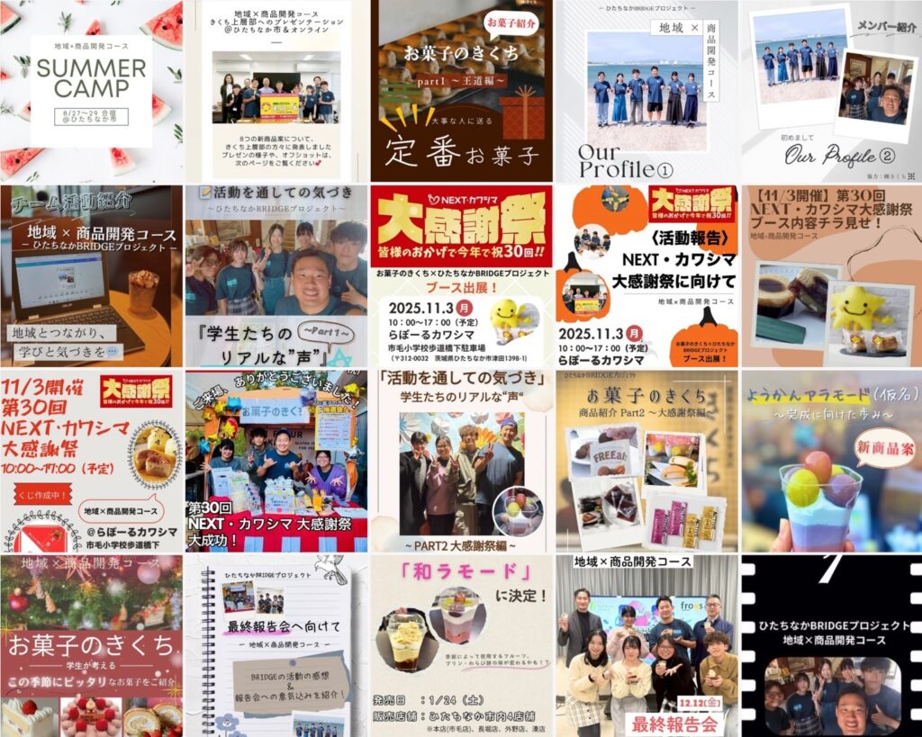 私たち地域×商品開発コースは、新商品を開発することだけでなく、広報にも力を入れて活動しました。地域×商品開発コースInstagramの投稿数は、1月31日現在、5回のリール(動画)を含む、30回。合宿後の9月から、1週間に1回以上のペースで投稿を行ってきました。