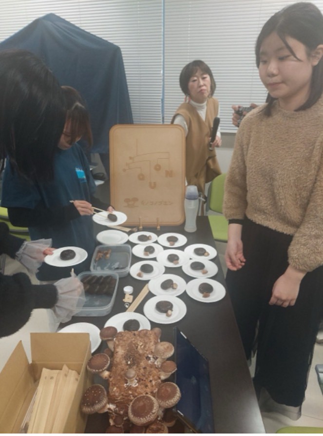 キノコ栽培の専門的な知見については、キノコノゴエン様(キノコノゴエン(@kinokonogoen) • Instagram写真と動画)(以下敬称略)に多大なご協力をいただきました。キノコノゴエンは、地域資源を活かしたキノコ栽培に取り組む事業者であり、循環型農業や「食」を通じた地域づくりを実践しています。専門家の方々から助言を受けながら試行錯誤を重ねることで、アイデアを単なる発想にとどめるのではなく、「実行可能な取り組み」として形にしていくことに協力していただきました